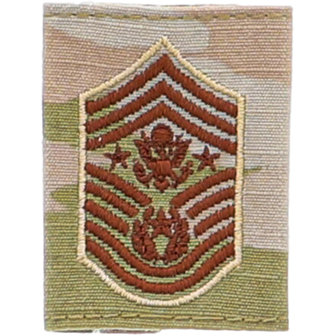 Air Force Chevron Chief Master Sergeant of Air Force Gore-Tex (OCP). Nametapes, Branch of Service Tapes, Rank, and Occupational Badges have all changed from the 7-color OCP material to a 3-color OCP material for better contrast. This was a change done in 2020 and is the new certified and approved material for Air Force and Army.